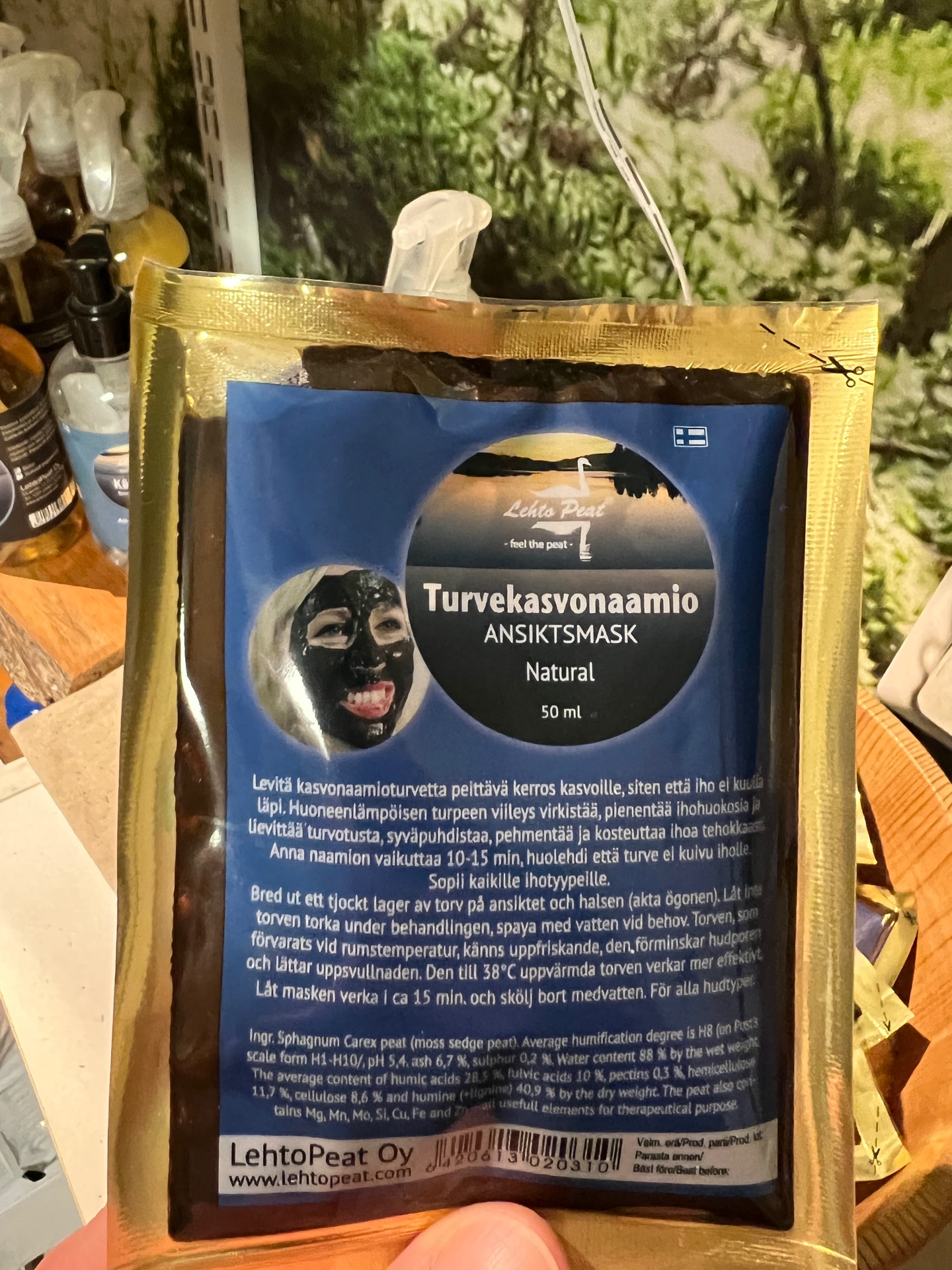 Turvekasvomaskeja myynnissä 6€/kpl Haapalan omassa panimokaupassa. Kaupasta löytyy myös erilaisia saunatuoksuja sekä kotimaista saiputta.